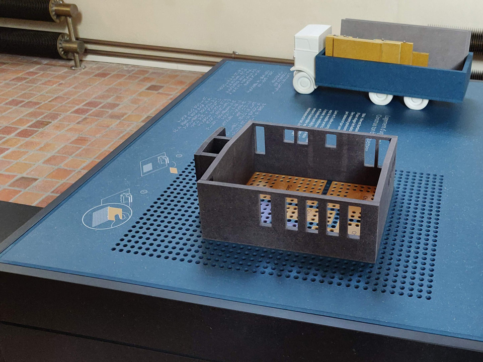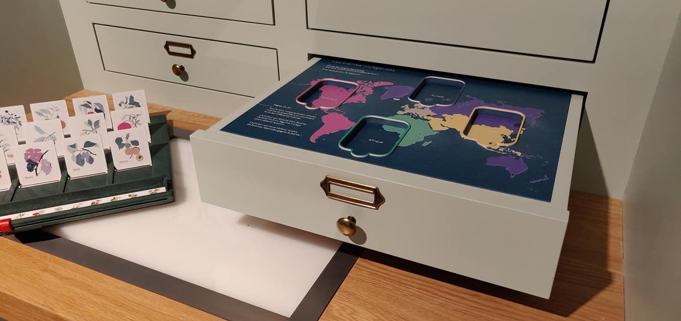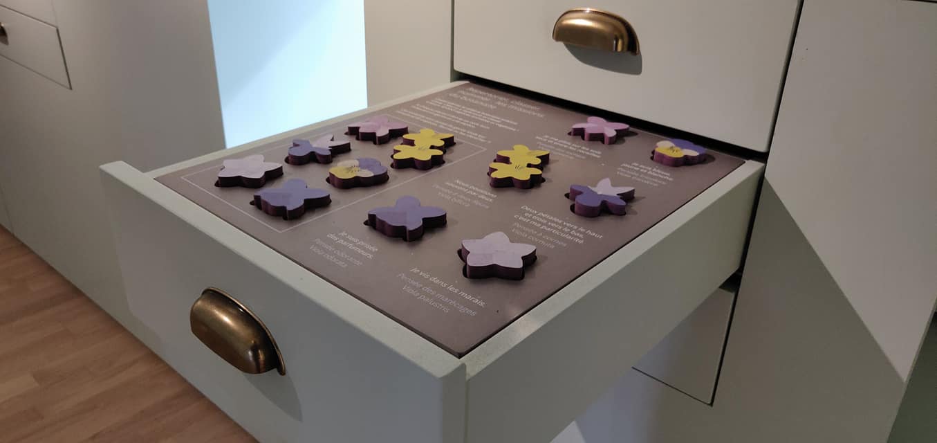 Imprint flowers to draw, a magnetic house to build, a tactile material library, a mechanical mill, card games, fake food… This project encompassed a wide range of specific knowledge and fabrication skills. I utilized my expertise in illustration, 3D design, and digital design, alongside traditional graphic design work – and I truly loved it.